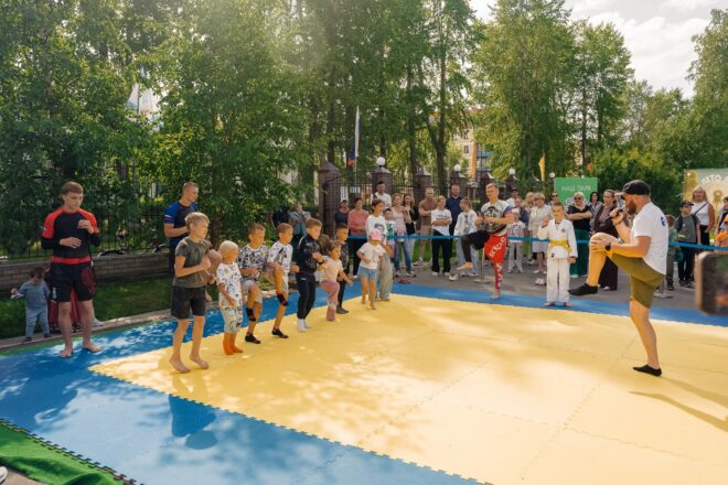 В программе выступили спортсмены из спортивных клубов и показали открытые тренировки по джиу-джитсу, боксу, ММА, каратэ киокушинкай, самбо, тхэквондо, фитнесс-направления, йоги.